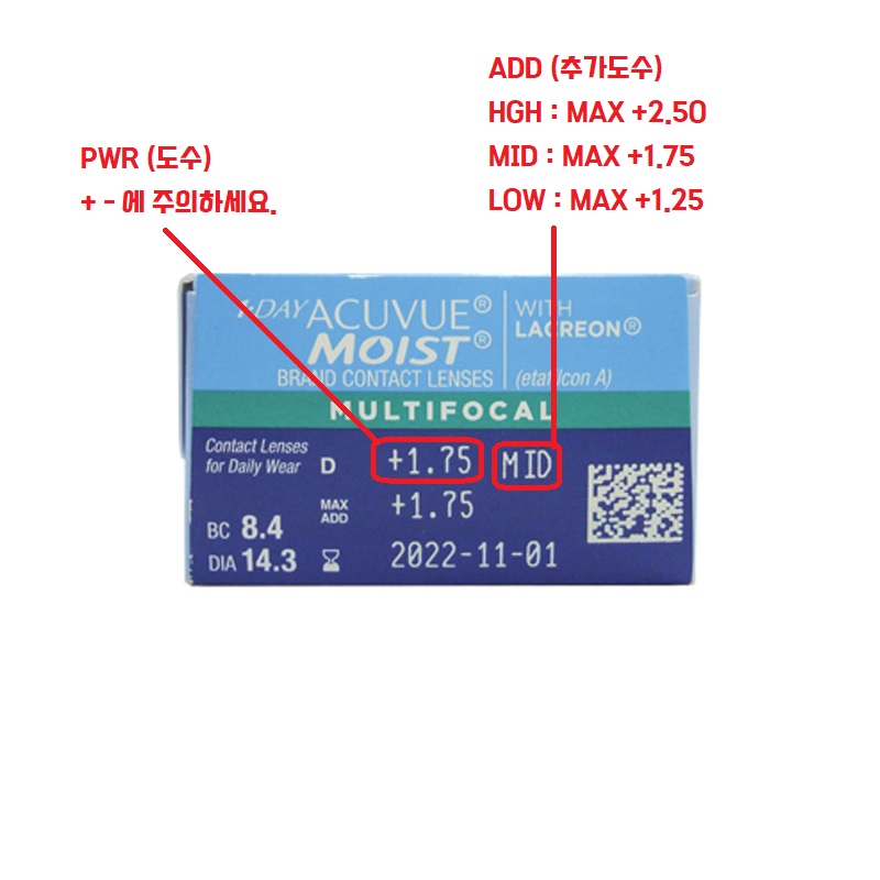 현재 사용중인 렌즈 상자의 옆면에서 나의렌즈 Data를 확인하세요.